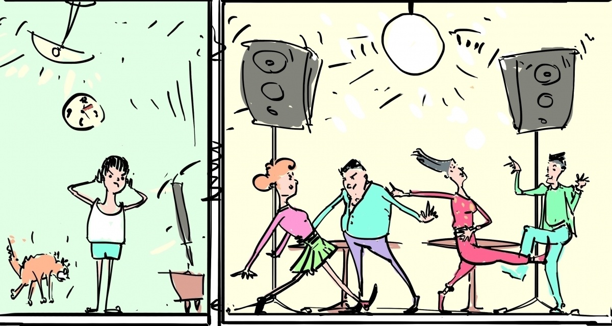 Алкаши-соседи из соседнего подъезда с четвертого этажа (а я живу на первом) врубили музыку в 3:30 ночи... До этого я иногда поднималась к ним (у меня есть ключ от их подъезда) и они выключали музыку, но этой ночью не стала этого делать и просто включила "Алису" белый шум, классная вещь.