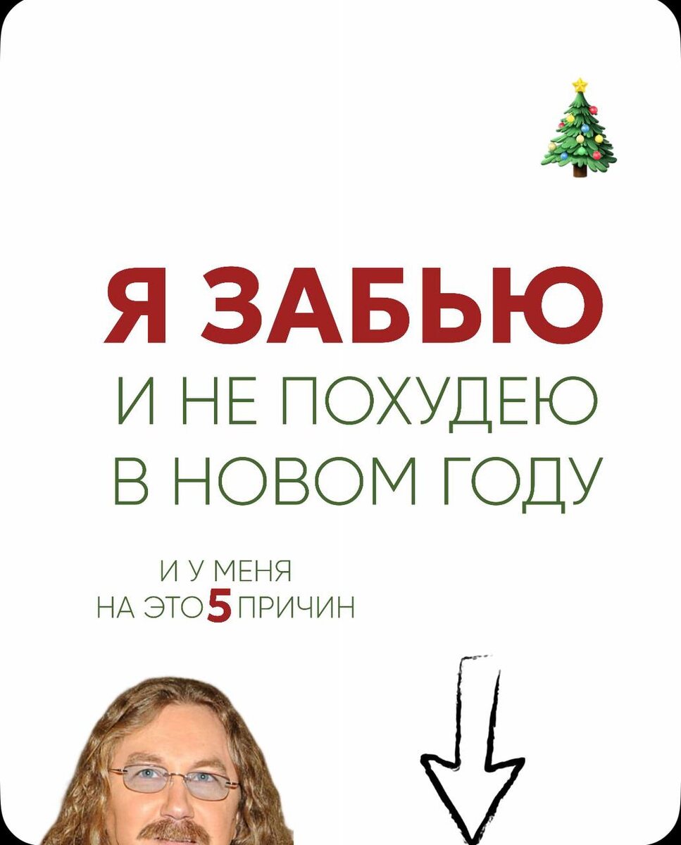 : Я устрою себе прощальный зажор. Тем самым подкреплю идею о том, что правильное питание это УТРАТА, а не приобретение. 2️⃣причина: Я буду фокусироваться на том, что должна стать худой, а не человеком, который не перебирает с каллориями и не ест гадости. 3️⃣причина: Я не буду обращать внимание на свое состояние и не буду искать способы успокоиться, отдохнуть, расслабиться, развлечься иначе чем через рот. 4️⃣причина: Я буду вывозить на силе воли. Не буду смотреть вот это видео https://youtu.be/k41tq8RvFHk?si=TWR0bxfY6h6J30O1 , и так и не узнаю, что привычка не формируется на морально-волевых. Привычка появляется когда легко и приятно (пищевые привычки не исключение) 5️⃣ причина: У меня не будет плана на срыв. Когда что-то пойдет не так, я себя просто поругаю и заброшу свои начинания до следующего нового года.