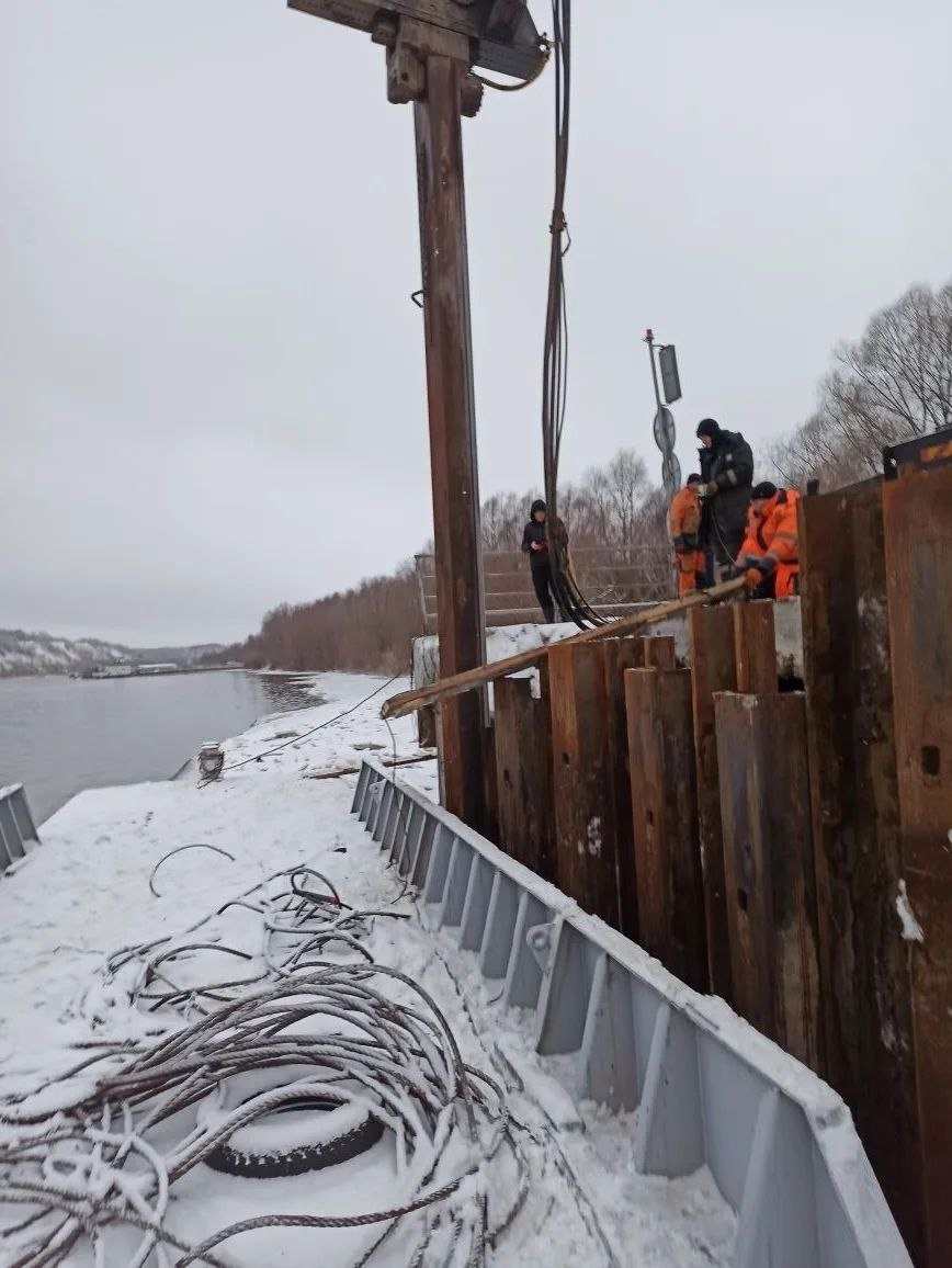 Как напомнили в министерстве транспорта Нижегородской области, специалисты восстанавливают береговой устой, который пострадал из-за ледохода в середине декабря. Специалисты стараются завершить все работы максимально в ужатые сроки, чтобы быстрее вернуть переправу в строй. На объекте уже разобрали старые бетонные конструкции и забили два ряда новых свай. В настоящее время рабочие готовят армокаркас для заливки новой плиты и обрезают шпунтовые стенки под проектный уровень. Точная дата открытия движения станет известна позже. 📸 министерство транспорта Нижегородской области