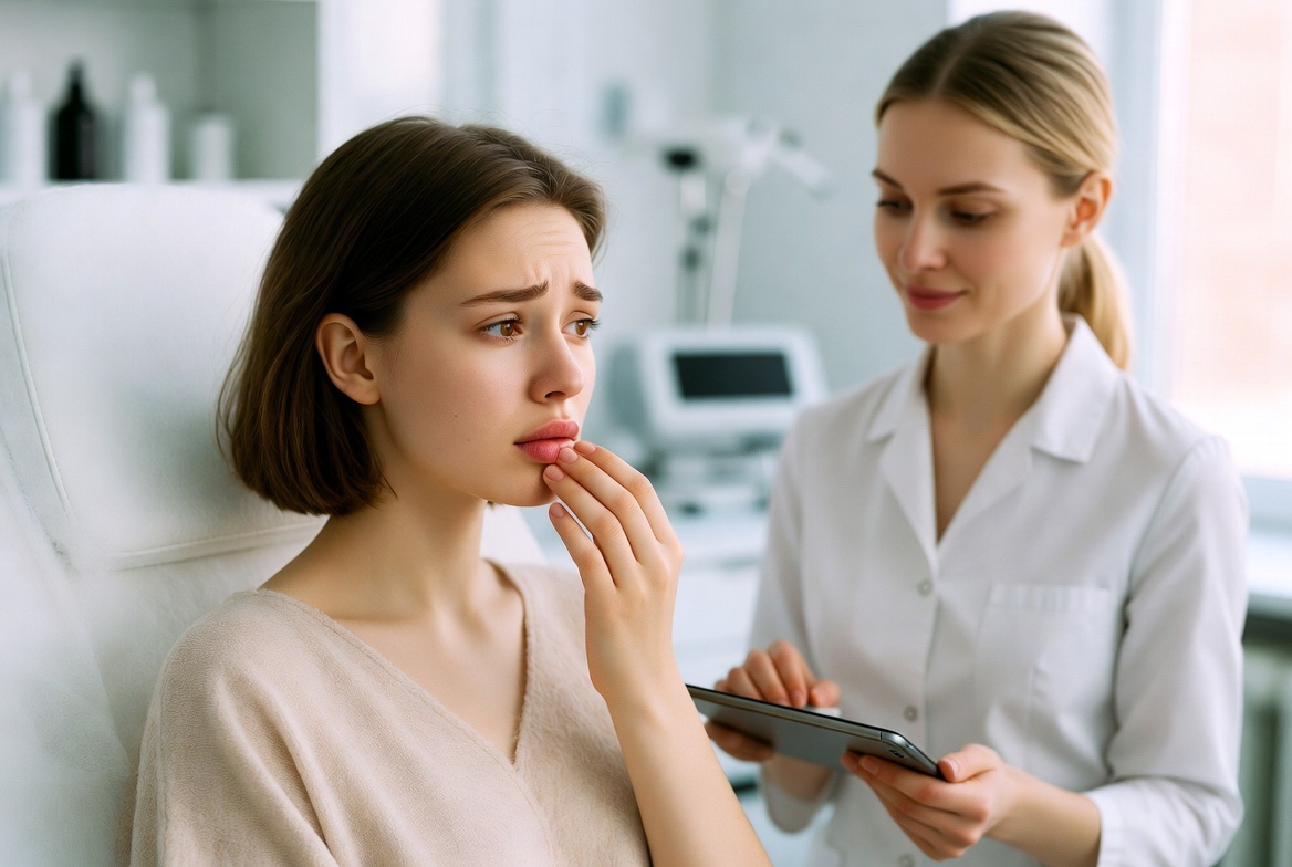 Боль в губах после процедуры — это не норма, если она длится больше двух-трёх дней. Лёгкая чувствительность, небольшая припухлость в первые сутки — это ожидаемо, особенно если кожа тонкая и чувствительная. Но если через неделю губы всё ещё ноют, появилась асимметрия, синюшность или уплотнения, которые прощупываются под кожей, то это сигнал: что-то пошло не так. Иногда девушки терпят, думая, что «рассосётся само», но на деле ситуация может усугубиться. Воспаление переходит в хроническое, ткани уплотняются, а филлер остаётся на месте, искажая форму. В таких случаях единственный выход — растворить препарат специальным ферментом, гиалуронидазой, и начать всё заново, но уже с другим подходом.
