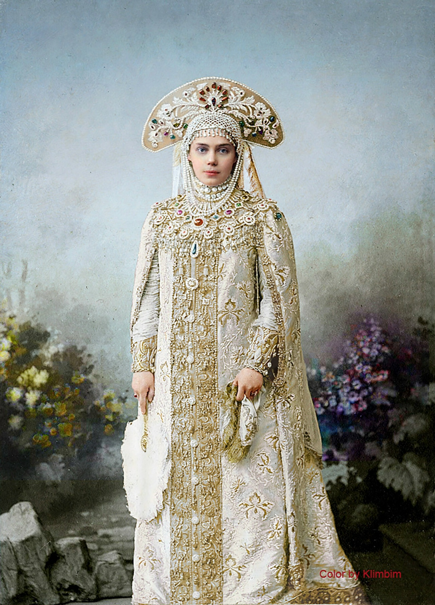 В феврале 1903 года Петербург увидел небывалое зрелище. Весь высший свет, включая императора Николая II, явился на бал в костюмах XVII века — эпохи первых Романовых. Это был тщательно реконструированный спектакль о могуществе династии. Гости щеголяли в нарядах, сшитых по эскизам художника Сергея Соломко, расшитых жемчугами. Фотографии бала были раскрашены и изданы в роскошных альбомах.
