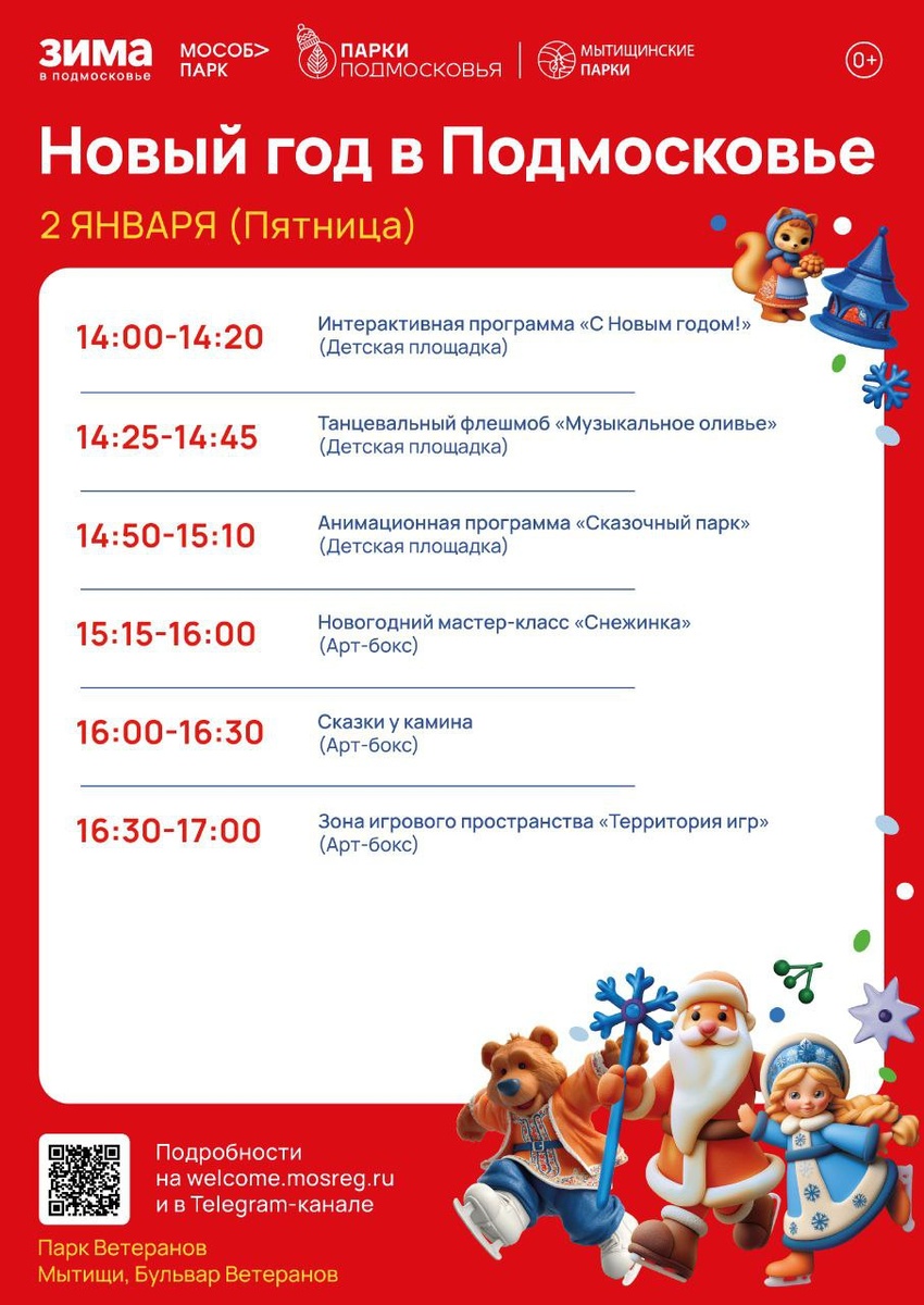 Расписание в Мытищинских парках на каникулы🌲