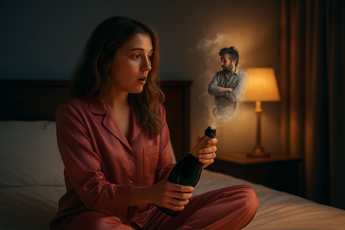 Рассказ Ровно в полночь, одинокая и уставшая от тишины Алена, открывая бутылку шампанского, услышала хлопок и увидела легкую дымку. Перед ней материализовался маленький Джин в смятой пижаме. «Повезло тебе, о лучезарная! — пробурчал он. — Я на новогодней сверхурочной. Загадывай три желания. Только формулируй чётко. Пункт первый? Ошарашенная Алена выпалила первое, что пришло в голову: «Хочу, чтобы жизнь закипела!» Джин тут же достал блокнот и начал строчить. «Понял. Интенсивность социальных и событийных взаимодействий — на максимум. Пункт второй?