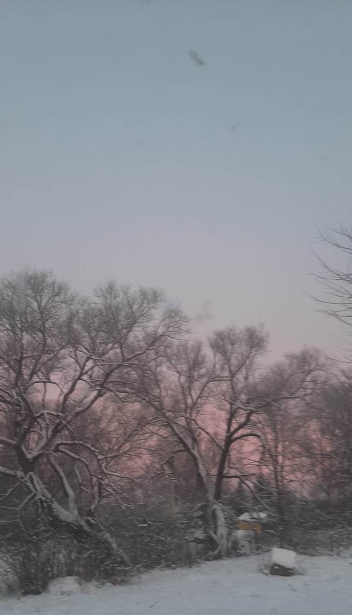 Небо безоблачно, ветер утих. Небо окрашено голубым и розовым,