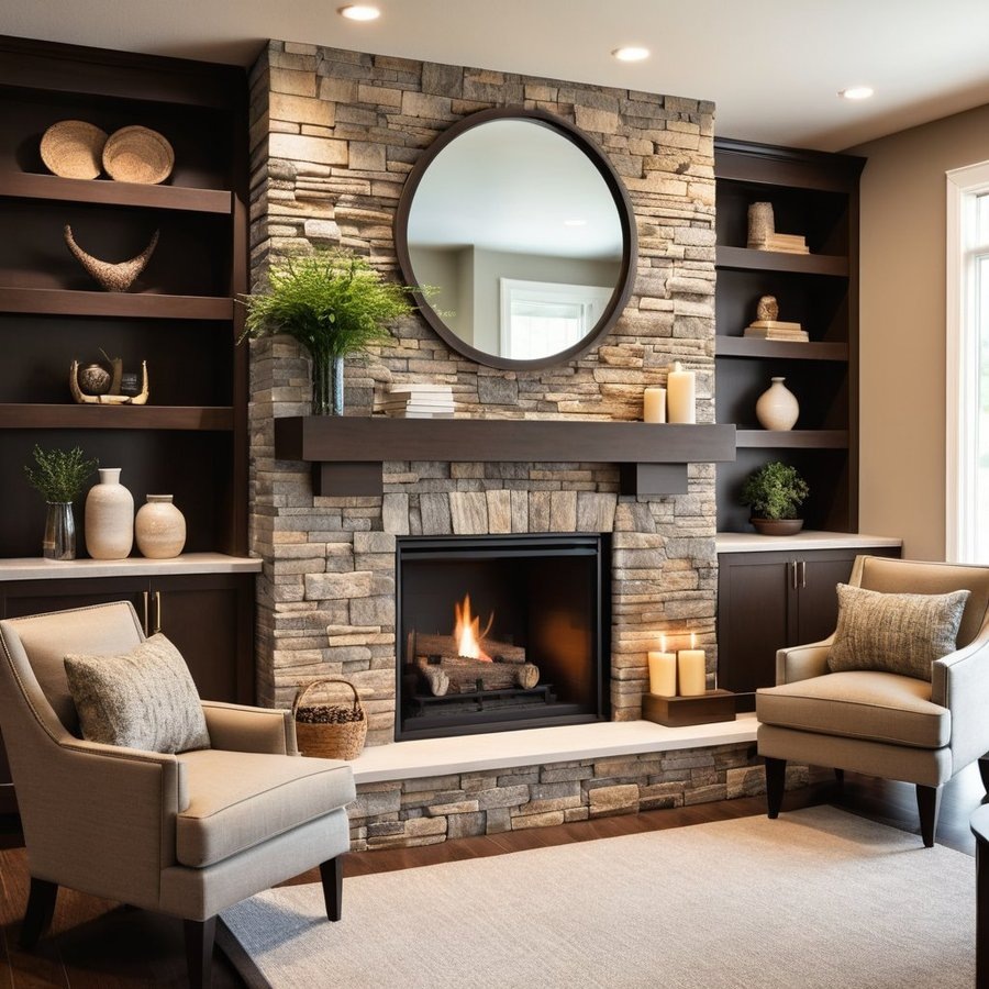 Оформление зоны камина искусственным камнем