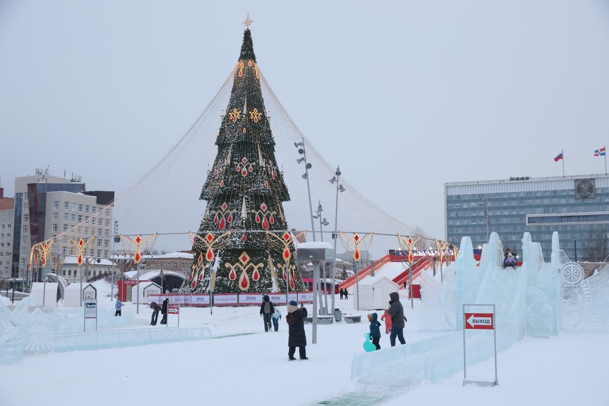 ! ❄️ На центральной эспланаде официально открылся волшебный ледовый городок, и в этом году он посвящён «Легендам Пармы». Городок украшен орнаментами народов Прикамья и изображениями в знаменитом Пермском зверином стиле. Вы встретите скульптуры «Кудым-Ош», «Хозяйка Медной горы» и «Серебряное копытце». Но это не просто выставка ледяных фигур! Здесь целых 10 объектов для веселья и фото: - 4 тематические локации для незабываемых фотосессий. - Ледовая покатушка «Голубая змейка». - 5 горок с названиями «Поляна Огневушки», «Самоцветный» и другие. - Новинка сезона: большая специальная горка для катания на сноубордах, горных лыжах и тюбингах. 🎄 Городок уже начал манить горожан, особенно с наступлением темноты, когда зажигается иллюминация. Нарядная 33-метровая ель в центре стала главным местом для селфи. 📅 График работы: - Ежедневно: с 12:00 до 20:00. - Новогодняя ночь (с 31 декабря на 1 января): с 22:00 до 03:00. - 1 января: с 10:00 до 22:00. В новогоднюю ночь на экранах