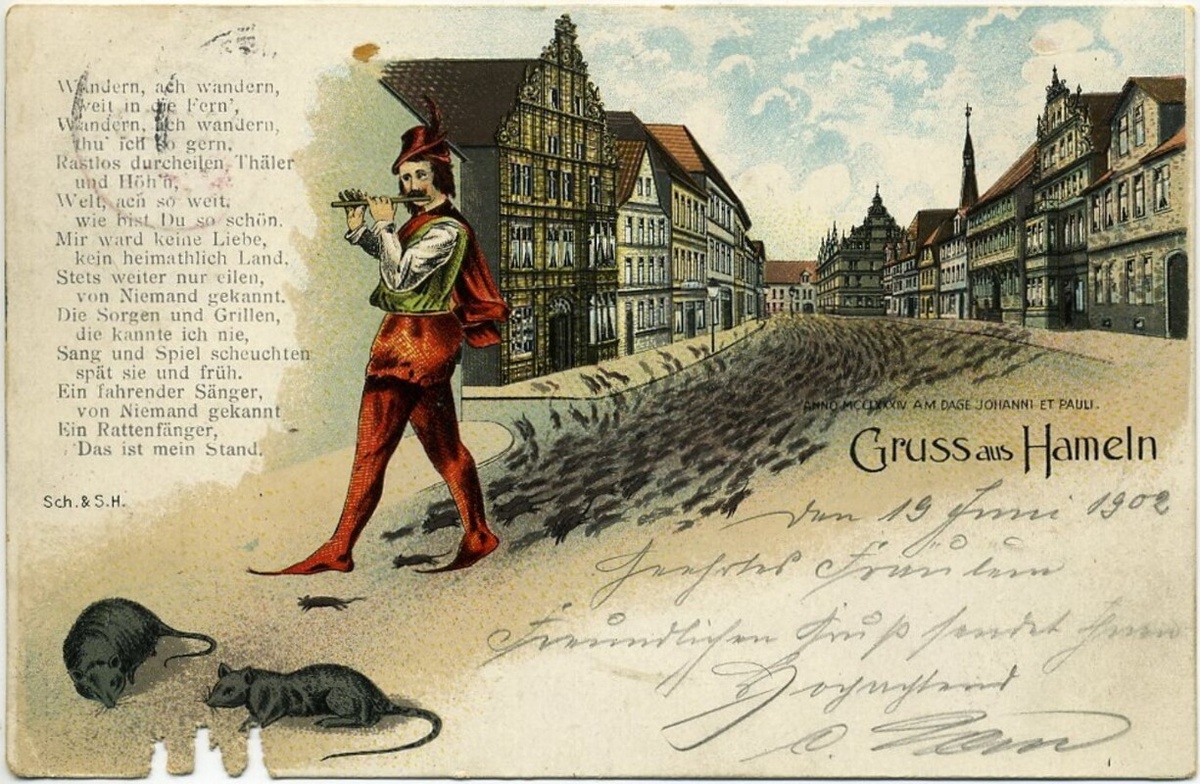 Легенда о гамельнском крысолове — пожалуй, одна из самых известных фольклорных историй Европы, и ученые до сих пор гадают, какое событие привело к ее зарождению. Портал medievalists.net рассказал о легенде и том, чем она могла быть вдохновлена. Давным-давно (если точнее, в 1284 году) Гамельн был процветающим средневековым городком, чьи обитатели не знали бед и жили припеваючи. Но однажды в тихий, мирный город нахлынула волна вредителей — крыс. Никто не мог сдержать их, и она быстро распространились по Гамельну, портя урожаи и одежду. Они даже прогрызали опоры деревянных домов. Инфраструктура города пала на грань коллапса и эпидемии по вине грызунов-захватчиков. Несмотря на старания, никто из жителей Гамельна не смог предложить эффективное решение проблемы. Однако как-то раз в город прибыл необычный музыкант — дудочник, ряженый в пестрые одежды. Увидев, что Гамельн отчаянно нуждался в помощи, дудочник согласился выманить крыс из города в награду за определенную сумму, на которую согласи