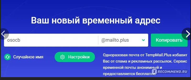 - Почту можно только сгенерировать — выбрать самому нельзя.