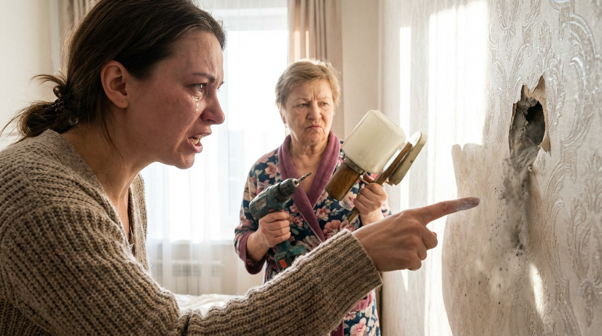 Марина ворвалась в спальню. Картина была эпической. Посреди комнаты на стремянке стоял какой-то незнакомый мужик в комбинезоне с перфоратором в руках. А Валентина Петровна руководила процессом, тыкая пальцем в стену прямо над изголовьем кровати.