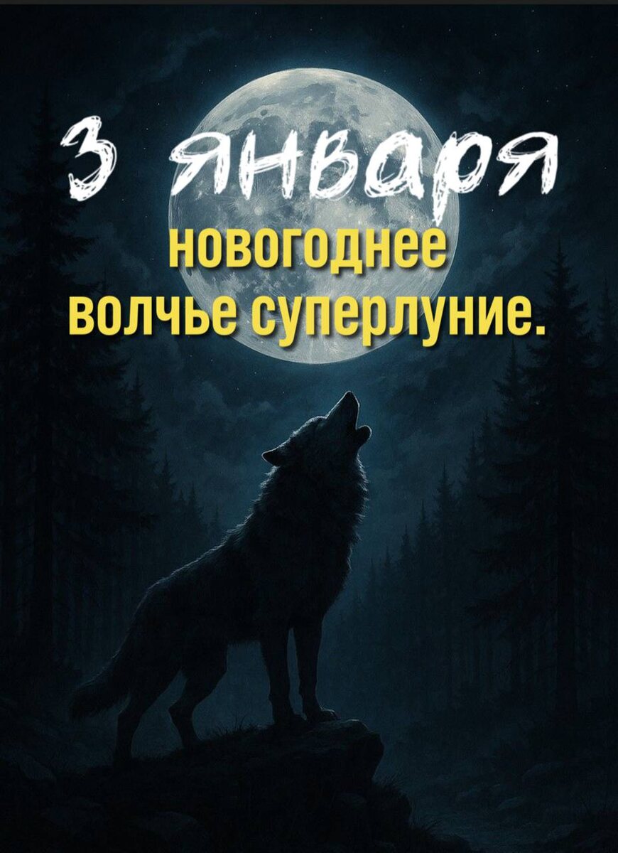 Нас ждёт первое полнолуние этого 2026 года. Январскую полную Луну называют Волчьей, а так как это первое полнолуние в новом году и ещё и суперлуние — по факту мы получаем новогоднее волчье суперлуние. Энергия дня сильная, но напряжённая. 🌑 ОБЩАЯ ЭНЕРГИЯ ДНЯ Солнце сейчас в Козероге — знаке логики, контроля, целей и «надо». Луна — в Раке, своём самом сильном положении, где она отвечает за эмоции, уязвимость, дом, душу и внутреннюю безопасность. Отсюда внутренний конфликт: хочу чувствовать — но надо держаться. Хочу тишины — но требуют действий. ♋️ КАК ПРОЯВИТСЯ ПОЛНОЛУНИЕ Полнолуние в Раке усиливает: - эмоции и перепады настроения - чувствительность и обидчивость - потребность в заботе и ощущении «дома» Могут всплывать старые обиды, претензии, семейные темы. Важно помнить: Луна усиливает, но не создаёт — она лишь подсвечивает то, что уже есть. ❌ ЧЕГО ЛУЧШЕ НЕ ДЕЛАТЬ В день полнолуния не рекомендуется: – начинать важные проекты – брать или давать деньги в долг – делать операции и уко