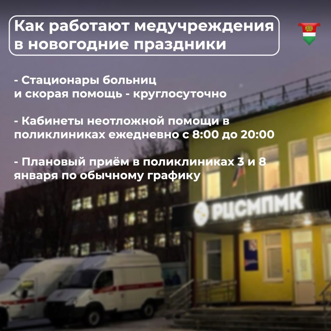 🟢Работа медучреждений и аптек в новогодние праздники