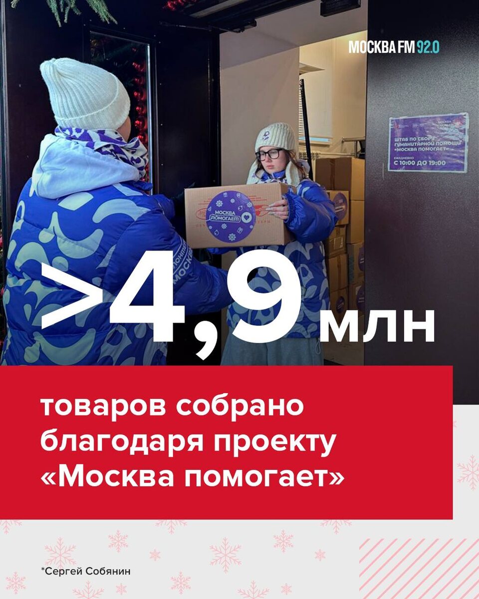 🎁 Почти 5 миллионов товаров собрано в столице благодаря проекту «Москва помогает», сообщил Сергей Собянин