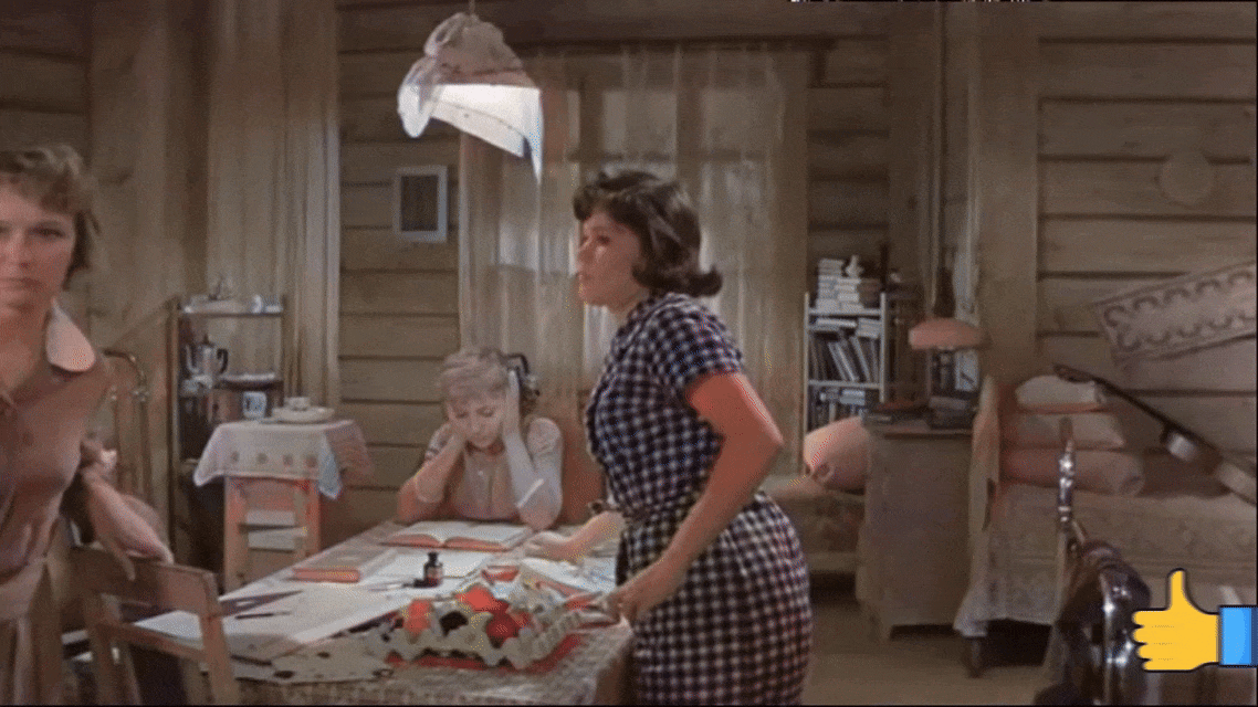С утра кинули шарф на стул, вечером обнаружили его уже свисающим совсем иначе, потому что кто-то проходил мимо и задел. Кино тут выдает себя, но не предает. Наоборот, такая бытовая нечистоплотность делает «Девчат» еще более реальными.