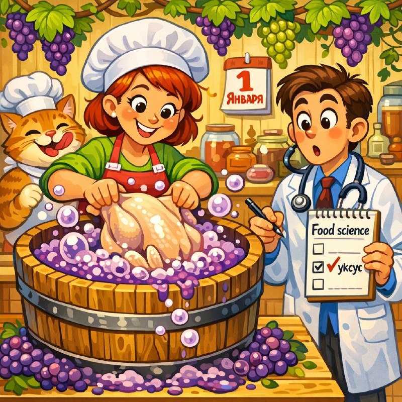 🍇 С детства наблюдал: мама каждый раз перед готовкой кладёт птицу в свой домашний виноградный уксус. Тридцать минут – и дальше обычный маринад. Привычка передалась и мне: 1. 🥣 Беру тазик, укладываю курицу целиком или частями. 2. 💧 Наливаю воду так, чтобы покрывало мясо. 🥄 На литр воды даю примерно 4–5 столовых ложек столового уксуса и чайную ложку соли. 3. ⏱️ Держу 30 минут, затем вынимаю курицу. Воду сливаю. 4. 🌿 В тот же тазик отправляю специи, травы, немного масла, греческого йогурта или кефира– получается основной маринад. 🔥 Птица лежит там ещё час-два, потом отправляется в духовку. 📚 Это не ритуал «ради галочки», просто вкус готовой курицы меня неизменно радует. Когда изучил химии процесса, понял, что привычка имеет прочную научную основу. 🧪🔬 Что происходит в уксусном растворе: • 🥩 Размягчение: Кислота слегка разрыхляет поверхностные белки; структура становится более пористой, через неё легче проходят соль и ароматические молекулы. • 💦 Сочность: Соль под действием к