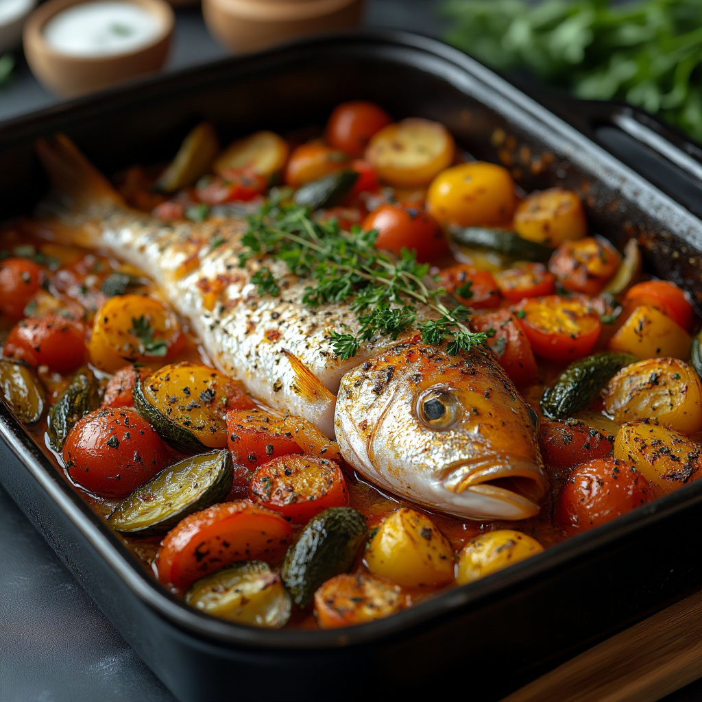 Запечённая с овощами рыба — это сбалансированное и простое в приготовлении блюдо, которое можно легко адаптировать под разные вкусы и диетические предпочтения. Следите за временем и температурой запекания, чтобы сохранить сочность и полезные свойства рыбы.