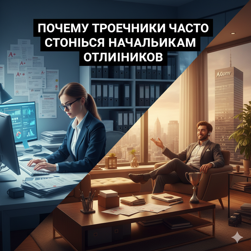 Нам обещали: «Учись на одни пятерки, и у тебя будет блестящее будущее». Мы зубрили формулы, сдавали рефераты вовремя и боялись каждой четверки. А потом на встрече выпускников выясняется, что Пашка, который списывал у нас математику, открыл сеть автосервисов, а «золотая медалистка» Лена работает рядовым клерком за среднюю зарплату.