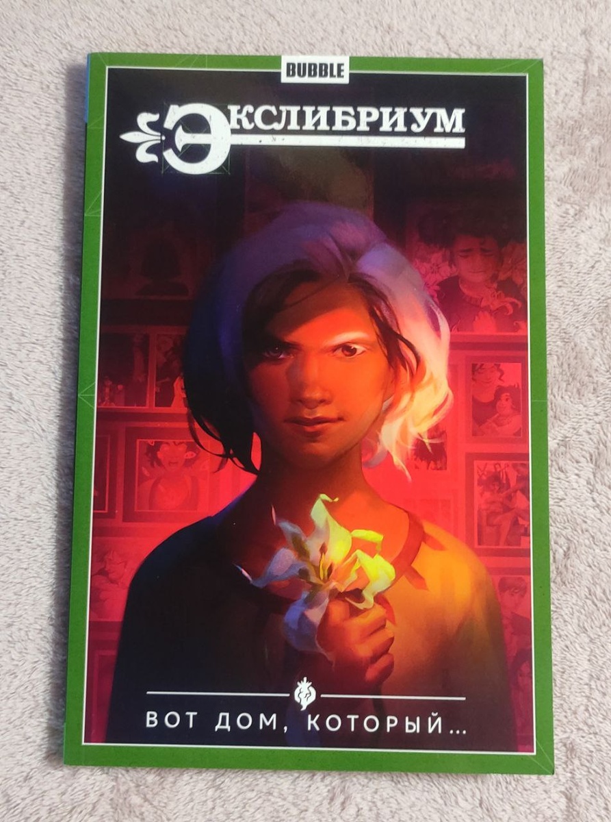 Вот дом, который..." - 9.5/10 Сюжет: Наталия Девова Художник (Моно): Юлия Журавлëва Художник (Вот дом, который...): Константин Тарасов Художник (С новым счастьем): Юлия Журавлëва Художник (Невинная история): Константин Тарасов 5 том "Экслибриум" Лиля продолжает обучаться в Библиотеке и улучшает навык владения цветом Вместе с новообретëнными друзьями она возвращает персонажей в их книги Вот только персонажи прошлого вновь появляются в её жизни, и тайна, скрытая временем, вот-вот напомнит о себе... Эта часть показывает больше историй персонажей, обладающих цветом, что позволяет проникнуться их переживаниями ~18+ ~206 стр