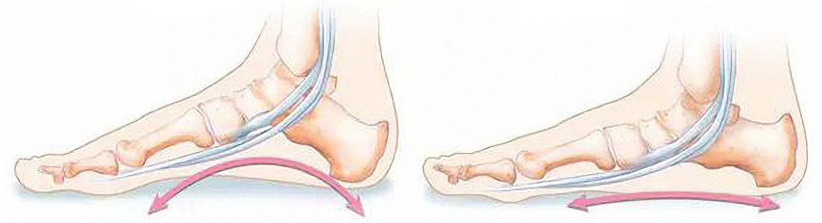 Нормальная и изменённая арка свода стопы.