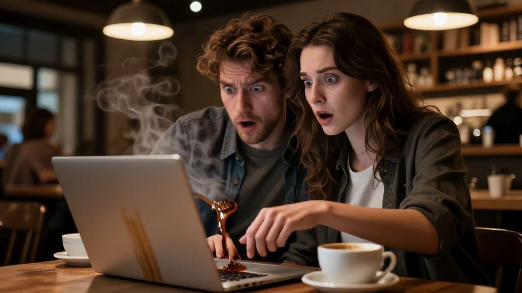 Я потянулся за сахаром, и вот оно – неловкое движение. Чашка накренилась, горячий кофе хлынул на стол, прямо на её открытый ноутбук. Коричневая лужица растеклась по клавиатуре, капли заблестели на экране. Аня ахнула, вскочила, хватая салфетки. "Сергей, ну как так?!" – воскликнула она, но без злости, скорее с той теплотой, что делала её неотразимой. Я метнулся извиняться, вытирая стол, но вдруг ноутбук ожил сам собой. Экран мигнул, и раздался чёткий, уверенный женский голос: "Привет, Аня. Какие планы на вечер с Максимом?"