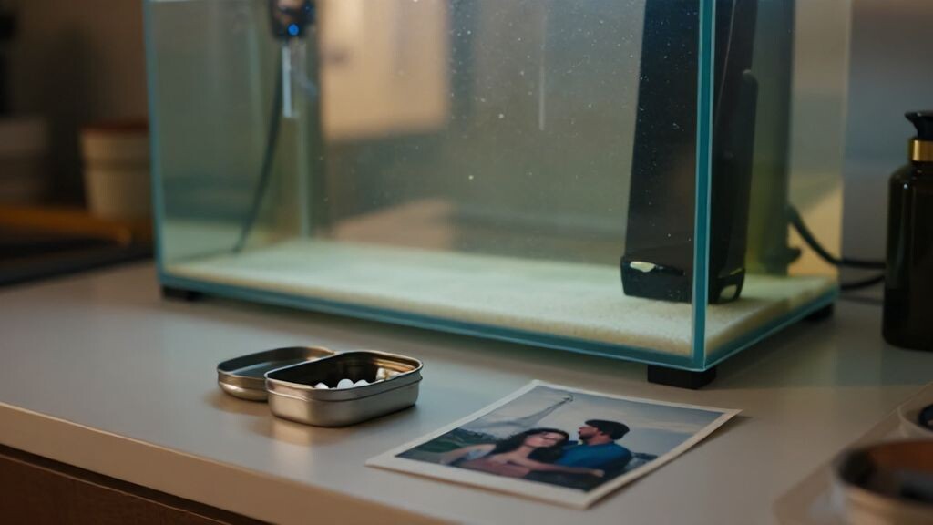 Я заглянул в тумбу, в коробку с документами, в шкатулку с украшениями, где лежали давно забытые серёжки и обломанный браслет. Всё было таким знакомым и обычным, что странно: как будто чужая деталь — этот контейнер — только подчёркивала общую обжитость. Я вернулся на кухню, сел и уставился на аквариум, где галька снова ровно лежала на дне, скрывая никаких больше секретов.
