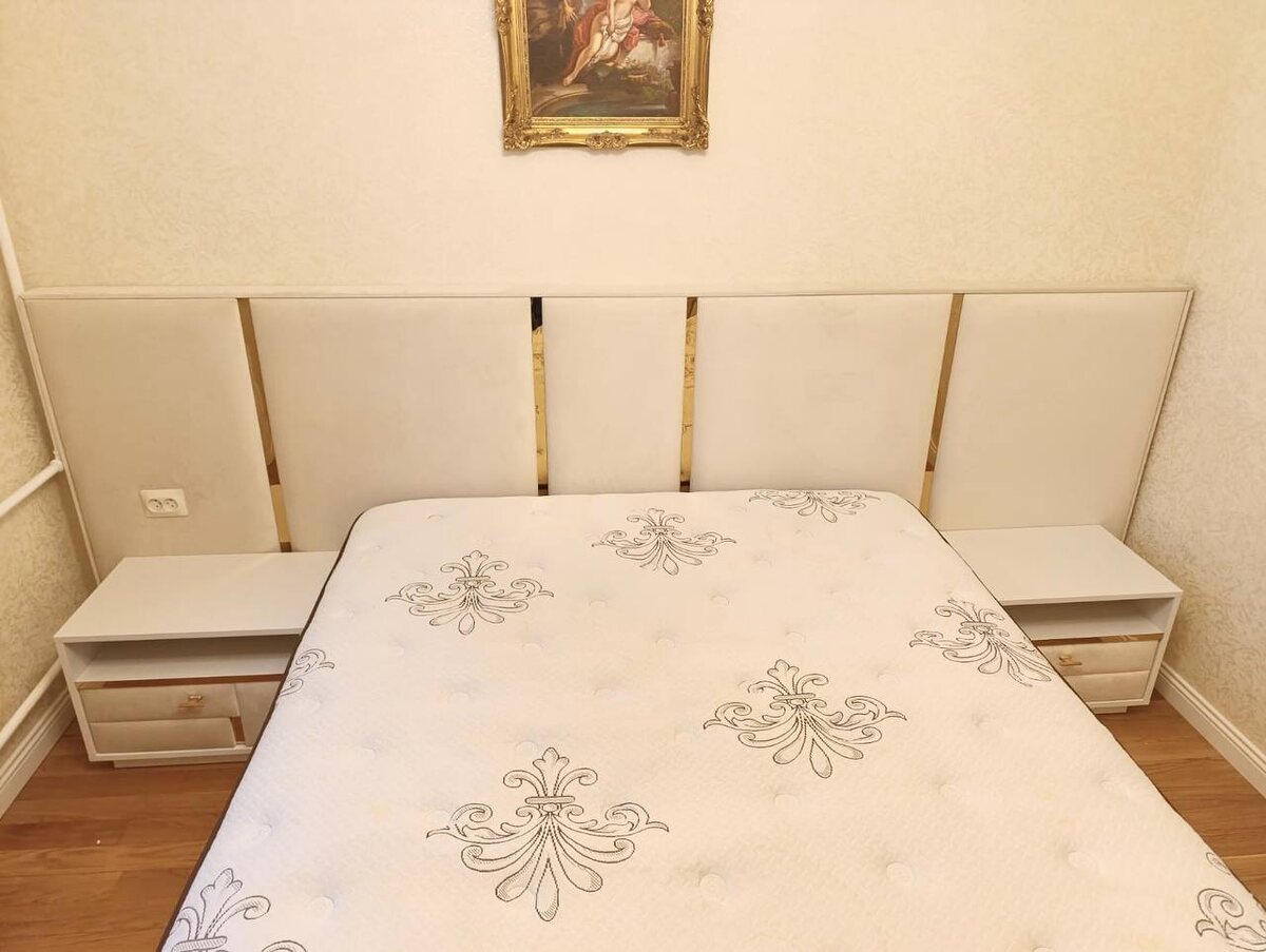 В этом проекте вся мебель подобрана так, чтобы идеально сочетаться друг с другом и с интерьером клиента. Кровать с широкими мягкими панелями и золотыми молдингами сразу задаёт атмосферу уюта и статуса. Корпус выполнен из прочной ЛАКФАНЕРЫ, а снаружи — антивандальный велюр, который не боится пятен и потертостей, сохраняя идеальный вид годами. Тумбы и шкаф поддерживают общий стиль: фурнитура BLUM обеспечивает плавное открывание и закрывание без хлопков, а фасады шкафа с фрезеровкой и покрытием Diamond Acryl не оставляют отпечатков и защищены от сколов и царапин. Зеркала добавляют лёгкости и визуально расширяют пространство. Итог для клиента — спальня, где всё выглядит цельно, материалы премиум‑класса снимают страх брака и недолговечности, а удобство в мелочах делает использование мебели ежедневным удовольствием. #спальня@decoreo