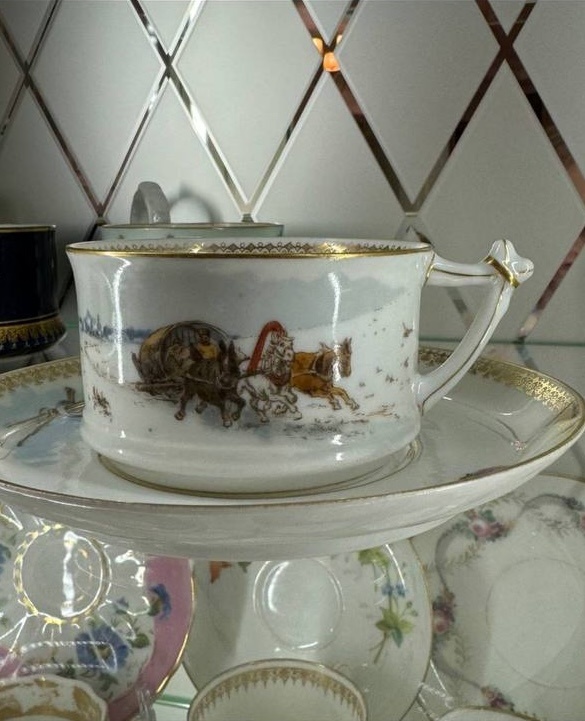 Поздравляю всех подписчиков и читателей канала с наступившим Новым 2026 годом! Я решила сегодня в самом начале года показать свои «зимние» чашечки. Знаете, когда перед твоими глазами стоят шкафы с чашками различных форм и расцветок, то выбор одной темы это всегда приятное занятие. И эти чашки, разделенные в обыденной жизни разными полками по заводам-изготовителям, на этой страничке канала объединились общей зимней темой. Они похожи на радостно встретившуюся здесь семью, которая живет в разных городах, и вдруг смогла собраться вместе. Посмотрите на этих зимних красоток. Каждая хороша по-своему. На первом фото чашка изготовленная на фабрике братьев Корниловых. Эта чашка из известной серии «Времена года» художника Каразина. На рисунке мчится запряженная тройка лошадей, которая спешит куда-то. Чашка с фото 2 и 3 изготовлена на фабрике Сафронова. Это чашка своим рисунком очень похожа на зимнюю сказку, очень интересную и очень добрую, которую неторопливо рассказывает сказочник, вокруг которо