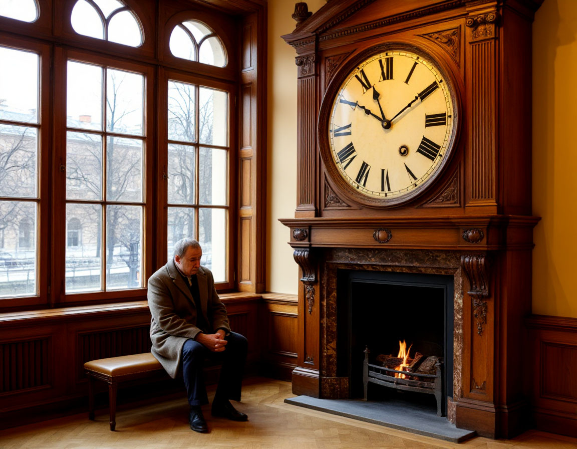 Эти часы были не просто экспонатом; они были архитектурной деталью. Большие, деревянные, в стиле модерн, они венчали каминную полку, которая давно не видела огня. Циферблат пожелтел, позолота цифр облупилась, а маятник застыл в вечном, косом положении. Каждый день, проходя мимо, я ловила себя на мысли, что бросаю на них взгляд — будто проверяю, не сдвинулись ли стрелки с этой вечной позиции «почти полночь». Они создавали странное чувство напряжённого ожидания в самом сердце музея.