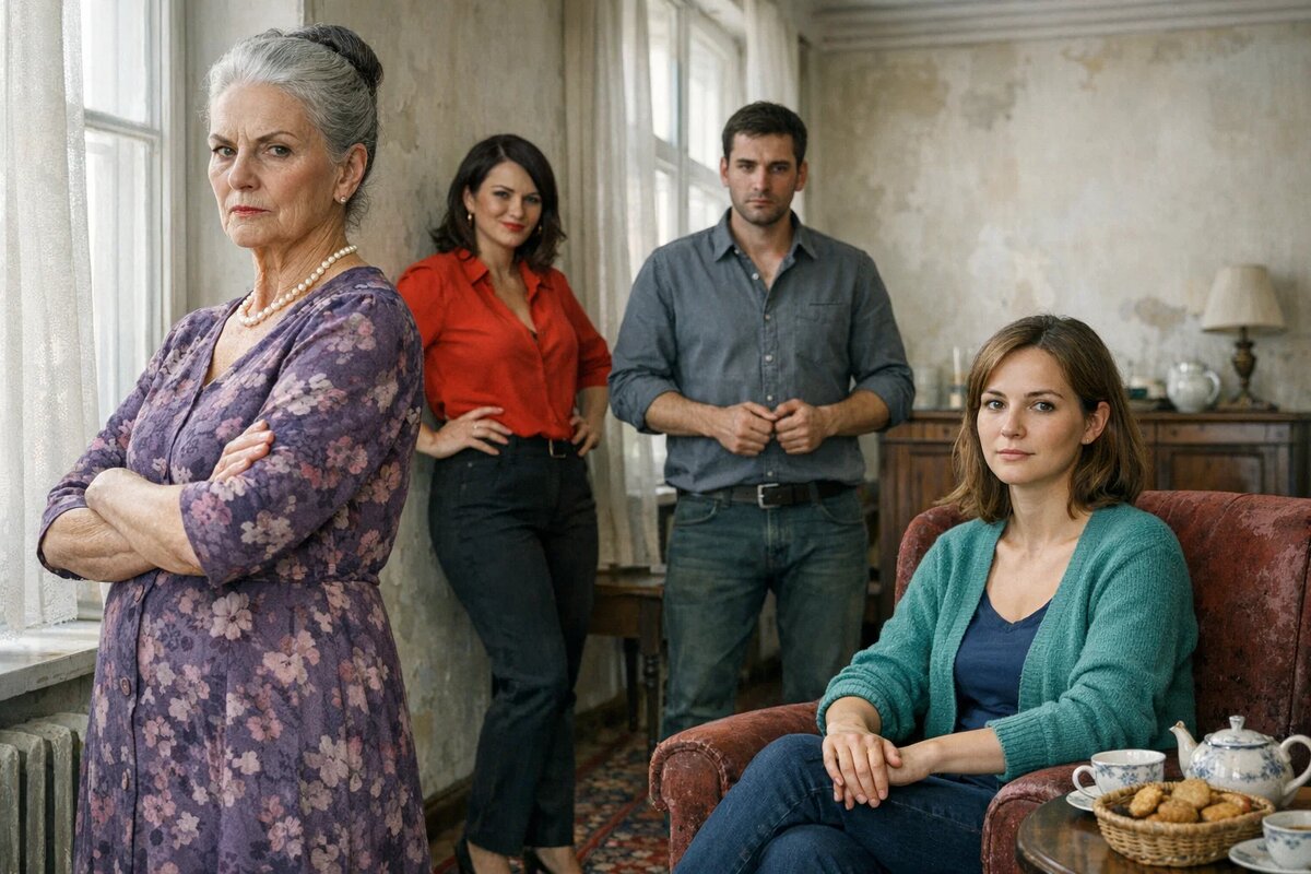 — Присаживайтесь, — Маргарита Степановна произнесла это так, будто предлагала мне место на благотворительной кухне. Сама уселась в кресло с высокой спинкой, поправила на шее нитку жемчуга. Жанна, сестра Андрея, стояла у окна и разглядывала меня как музейный экспонат.