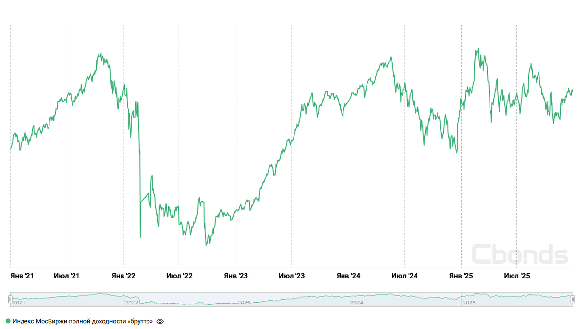 Всем привет! Когда я пришел на биржу, то активно смотрел разные ролики про инвестирование. Особенно мне запомнилась следующая байка про нескольких инвесторов, которые покупают только акции: один всегда покупает в низшей точке индекса, второму не везет и он покупает всегда на хаях, третий покупает как получается. Итог истории в том, что все они в конечном счете очень разбогатеют не важно как покупали, главное делать это регулярно и как можно дольше. Важно понимать, что эта история базируется на американском фондовом рынке, который (индекс SP500) за последние 5 лет удвоился: Но нам-то это парили все про российский фондовый рынок! Давайте посмотрим на так называемый индекс полной доходности брутто (MCFTR), который уже учитывает выплаченные и реинвестированные дивиденды и не включает налоги. Думаю, что вы не удивитесь, узнав, что вложи вы 1 млн рублей в индекс Мосбиржи 5 лет назад, то ваш капитал сейчас составлял примерно тот же миллион рублей. А что нам индекс, скажут многие? Мы бы выбра