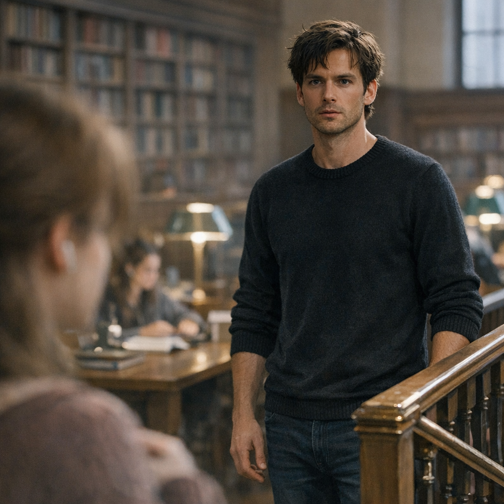 Он был выше, чем на фото. В живую — более резкий, более реальный. В тёмном джемпере, джинсах. Волосы, как она и помнила, непослушные, чуть слишком длинные. Он осмотрел зал быстрым взглядом, нашёл её. И замер.