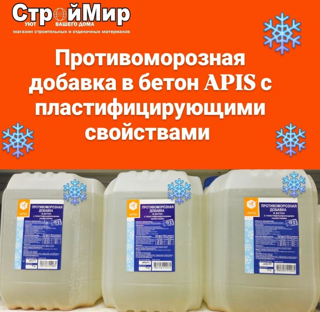 Противоморозная добавка в бетон APIS с пластифицирующими свойствами используется при приготовлении и укладке бетона и растворов в зимних