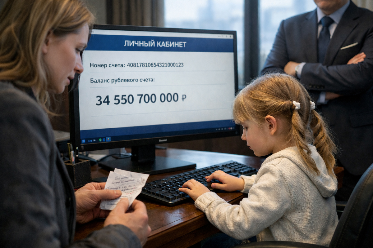 Не может ведь быть такого, чтобы напротив строчки «Баланс рублевого счета» было написано число, состоящее из одиннадцати цифр: 34 550 700 000! Я бессознательно считаю разряды. Тридцать четыре миллиарда… пятьсот пятьдесят миллионов… семьсот тысяч… рублей. Это абсурд. Это цифры из Forbes, из новостей о состоянии крупнейших бизнесменов, а не баланс на карманных расходах шестилетней девочки.