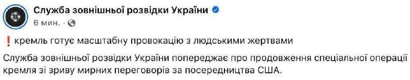 Служба внешней разведки Украины заявила, что Россия «готовит на Рождество масштабную провокацию со значительными человеческими жертвами» с