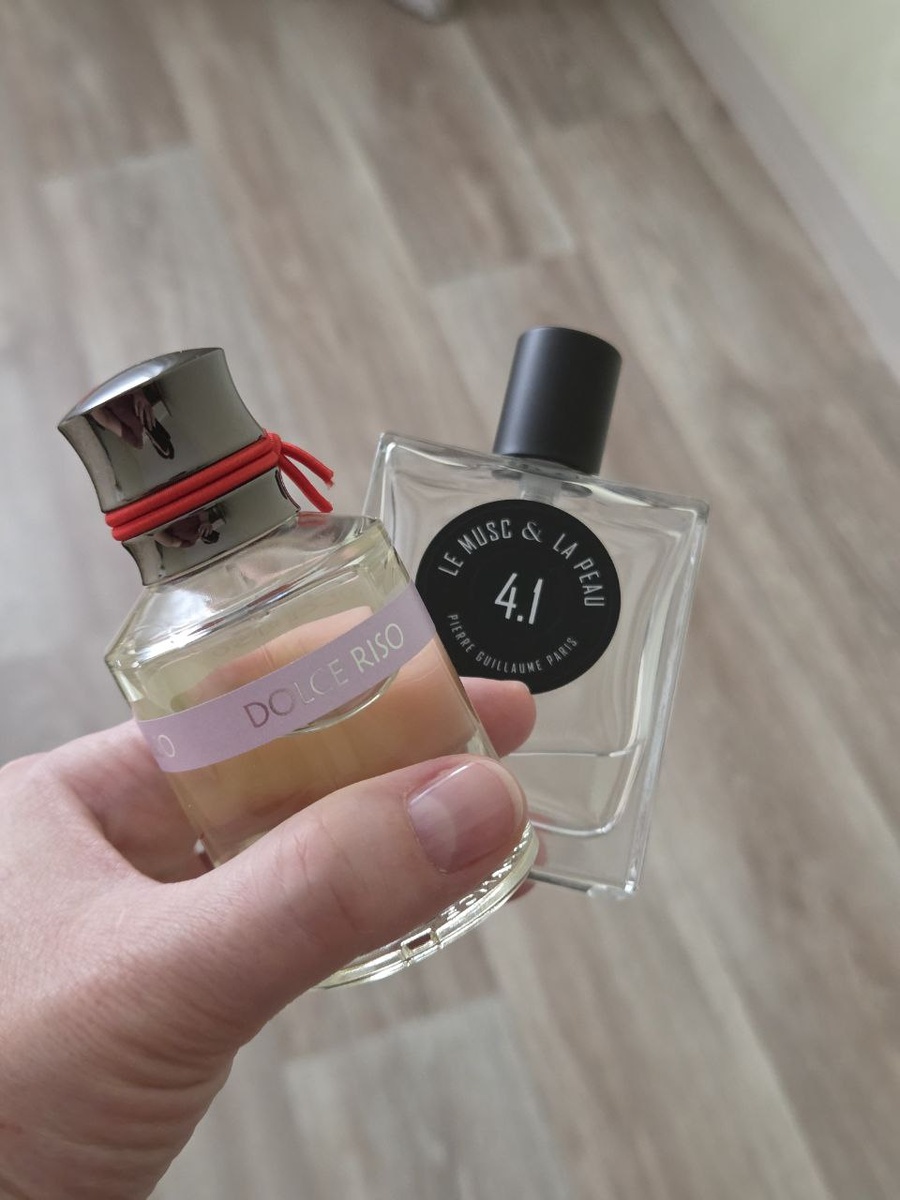 » Dolce Riso — как герой мультика: яркий, дерзкий, с ноткой яблочной мармеладки. Прыгает на коже, веселит, но не задерживается. Le Musc & La Peau 4.1 — спокойный кокон из мыльной пены. Обволакивает, убаюкивает, держит шлейф как тёплый плед. Вместе — идеальный баланс: сначала улыбка, потом умиротворение. Хаос встречается с гармонией. Просто, но цепляет! 😄