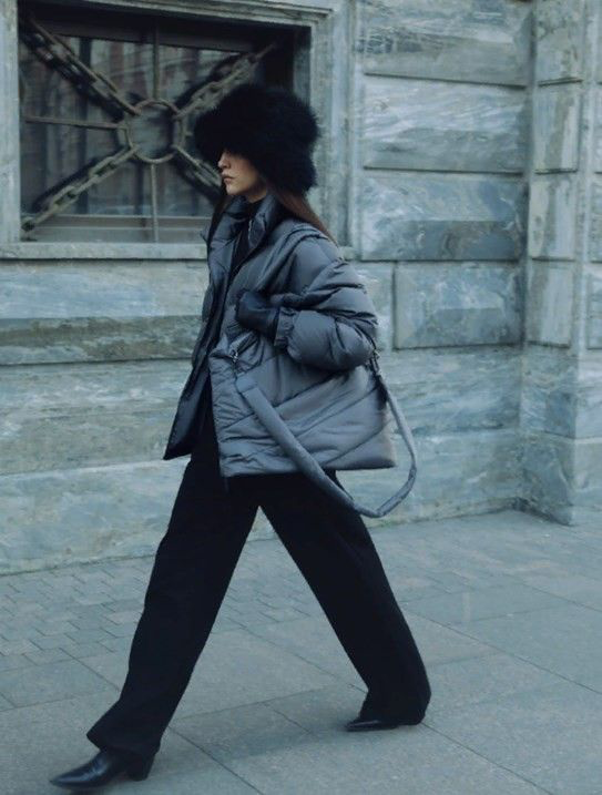 Такого уровня элегантности, как в пальто или шубе, с пуховиком не добиться, конечно же. Но! Если немного постараться, то можно хотя бы избавиться от настроения «Вышла погулять с собакой». Ниже показываю неплохие референсы для вдохновения.