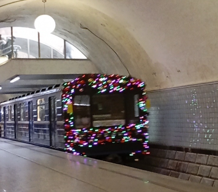 В конце декабря на зелёной ветке метро украсили номерной состав.