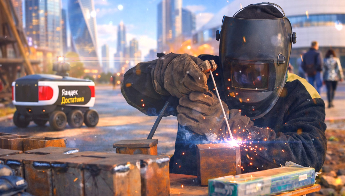 Здорово, мужики!👋 Видали картинку сверху? Пока кто-то мечтает о доставке обеда роботом-курьером «Яндекса», в реальном мире, в грязи и на высоте, эти самые роботы могут разве что офигевать от того, что мы творим. Давайте честно: тем, кто привык сидеть в чистеньких ангарах на серийке, пора обновлять резюме. Заводские «теплые места» — это первая цель для ИИ. Роботу не нужен перекур, у него не дрожит рука после вчерашнего, и ему не надо платить сверхурочные за ночную смену. Уже сейчас манипуляторы варят швы, которые нам с вами и не снились. К 2035 году цеха превратятся в стерильные аквариумы, где вместо сварщика — оператор в белой рубашке. Обидно? Не то слово. Ощущение, что нас, тех, кто десятилетиями набивал руку, просто выставляют за дверь, заменяя бездушной железкой. Кажется, профессия умирает, и мы — последние из могикан. Но не спешите бросать держак в урну. Тут начинается самое интересное. А теперь спустимся с небес на землю. Точнее — в траншею, заполненную ледяной жижей где-нибудь п