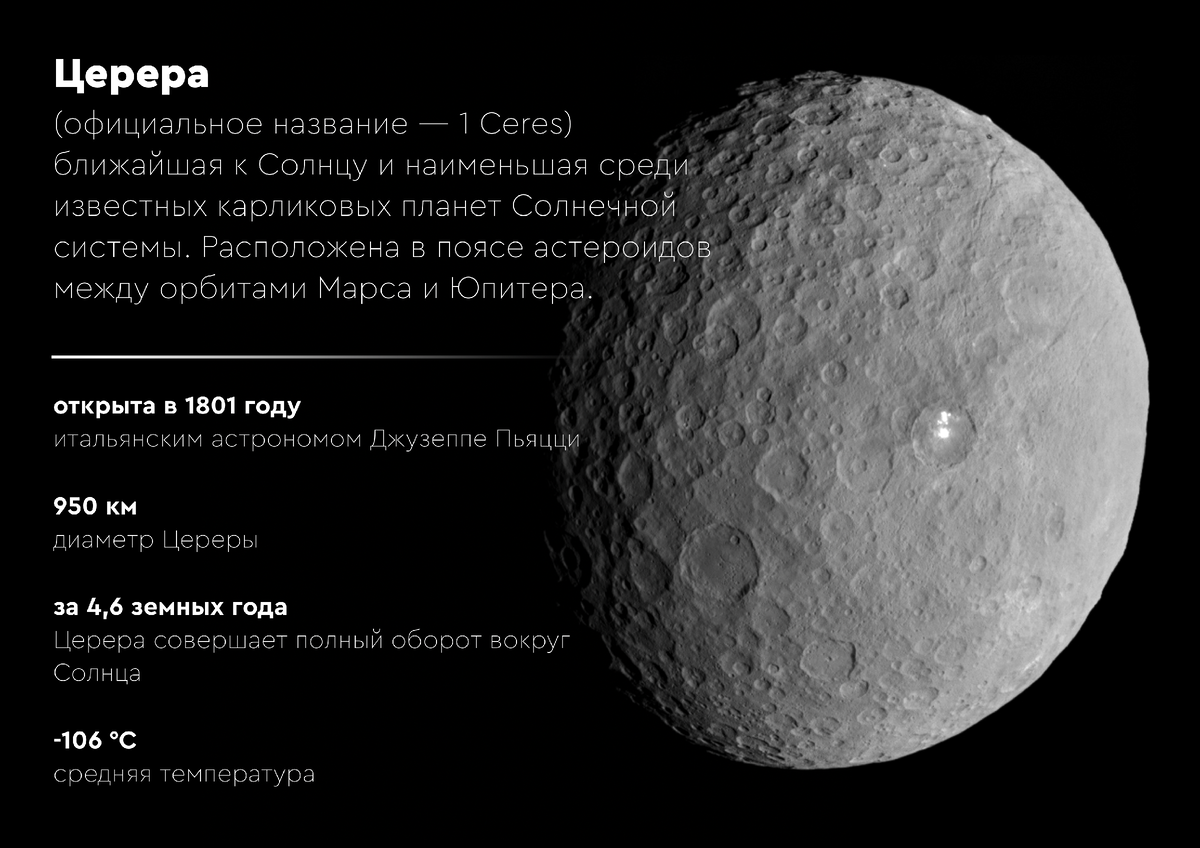 1 января 1801 года. Первый день нового века. В обсерватории Палермо Джузеппе Пьяцци, склонившись над зафиксированными результатами многих ночей, видит нечто. Не звезду — она двигалась. И не комету — её движение было слишком плавным и постоянным. Он открыл… планету? Так все и решили. Церера — восьмое чудо Солнечной системы! Эйфория длилась недолго. Рядом нашли Палладу. Затем Юнону, Весту… Небеса вдруг стали тесными. И к 1850-м от восьмой планеты Солнечной системы остался лишь скромный титул «астероид №1». Обидно? Возможно. Но самое интересное было впереди. Что же такое карликовая планета? Это не просто «маленькая планета» и уж точно не астероид побольше. В определении Международного астрономического союза – это мир, обладающий достаточной гравитацией, чтобы принять сферическую форму. Сила собственного тяготения заставляет его забыть об угловатости, стягивая материю в почти идеальный шар. Церера, безусловно, проходит этот «тест на достоинство» — она не бесформенная глыба, а сложившееся н