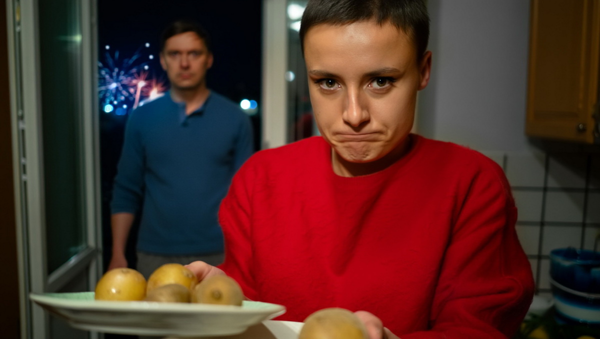 Катя приехала накануне тридцатого декабря. Чистила картошку три часа подряд — пальцы онемели. Резала оливье мелкими кубиками, как требовала Валентина Семёновна. Жарила мясо. Лена крутилась рядом и находила, к чему придраться:
