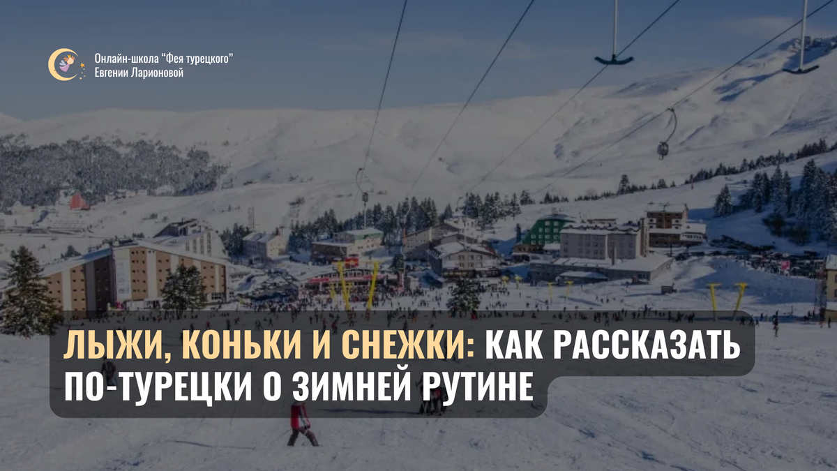 Зима в Турции и зима в России - это две разные реальности. Где-то снег лежит месяцами, а где-то зима - это просто холодный ветер, дождь и редкие снежные дни. Именно поэтому, когда мы рассказываем турецким друзьям о своей повседневной зимней рутине, часто приходится подбирать слова: для них многие вещи звучат как экзотика. Сегодня разберем 3 идеи зимней активности — и то, как о них говорят по-турецки. Сразу примеры предложений: В России лыжи - это часть обычной зимней жизни и навык, которому многие учатся еще в детстве. Это выглядит как обычная зимняя привычка: покататься на лыжах в парке или лесу и вернуться домой. 📍 В Турции ситуация другая. Здесь беговых лыж в привычном для нас понимании нет. Однако там есть горнолыжные курорты, и для самих турок лыжи - вполне знакомый, хотя и не самый доступный формат зимнего отдыха. "Кататься на коньках" - формально правильное и понятное сочетание, но за ним скрывается важный нюанс: фраза так таковая есть, но "опыта" - почти нет. Катание на конька