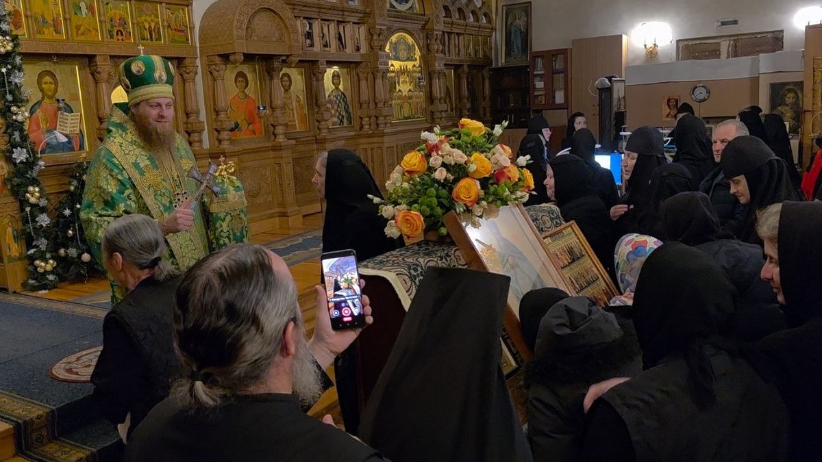 После службы, по монастырской традиции, всем молящимся надевали шляпу святого Иоанна Кронштадтского, которая досталась батюшке Зосиме от