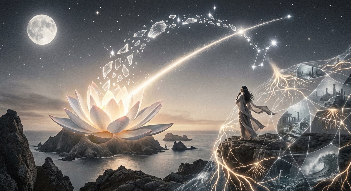 Когда лотос раскрылся, кусочки Лиры, застрявшие в ветре неба, стали собираться. Яркий шлейф соединил звёзды, и над архипелагом снова возникла созвездная арка. Голос корней открылся: земля заговорила с Кер'а, не словами, а сетью образов — корни, что тянулись в глубину бездны, и древние города, что спали под мхом. Она услышала боль тихих островов, радость прибоя, и понимание пришло сразу и остро — техника возвращения лиры требовала постоянного баланса: кто давал, тот стал мостом между мирами, но терял часть того, кем был.