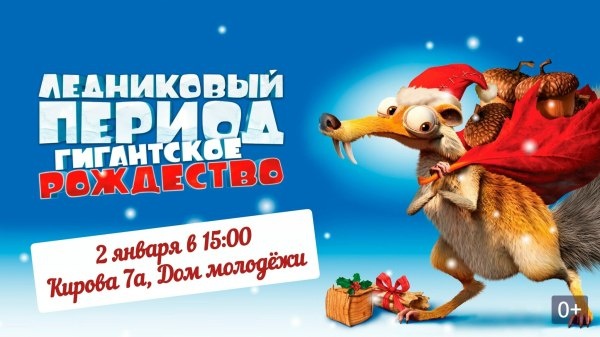 ! Приглашаем вас на показ мультфильма «Ледниковый период: Гигантское Рождество»! Когда: 2 января в 15:00 Где: Кирова, 7а, Дом молодёжи Погрузитесь в волшебный мир приключений любимых героев и насладитесь атмосферой Рождества вместе с нами! Не пропустите возможность провести время в компании друзей. Ждем вас! НАСТОЯТЕЛЬНО РЕКОМЕНДУЕМ ИМЕТЬ ПРИ СЕБЕ СМЕННУЮ ОБУВЬ (БАХИЛЫ)! #ЛедниковыйПериод #ГигантскоеРождество #ПоказМультфильма #ДомМолодежи #Кирова7а Источник https://uchaly102.ru/?p=118874