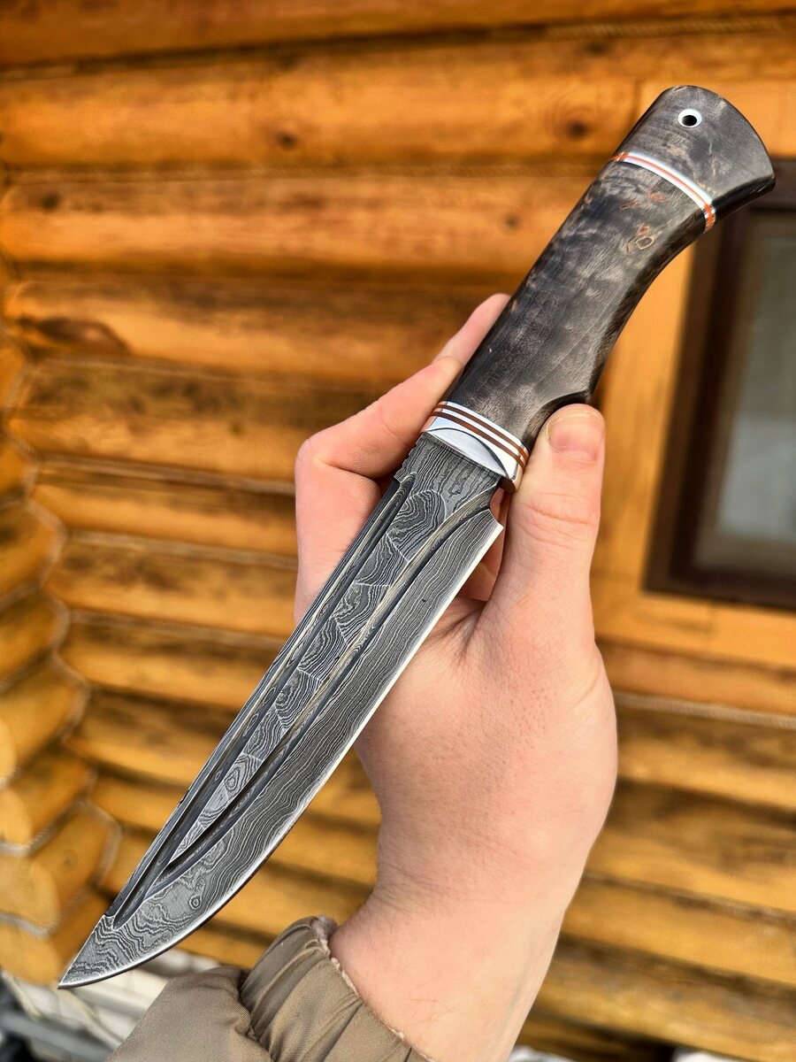 ! ✨ 📌 Особенности: — Клинок из дамасской стали с фигурными долами — Твердость 62 HRC, *бритвенная заточка* — Рукоять: чёрный граб, белый акрил, мельхиор и мозаичные пины — Ножны из натуральной кожи 🔥 В наличии всего 2 ножа! Цена: 15433 руб. Акция! Сейчас — *13118 руб.* Дополнительно: можем изготовить формованные ножны из кожи растительного дубления (+8000 руб.) 🎁 Отличный выбор для охотников, коллекционеров и ценителей уникальных изделий ручной работы. 📲 Для заказа: @Nazarklinokbot +7 910 134-38-31 (WhatsApp, Viber) #дамаск #ручнаяработа #ножнасапёр #кузницаназарова #эксклюзив #подарок #охота #коллекция #ручнойнож