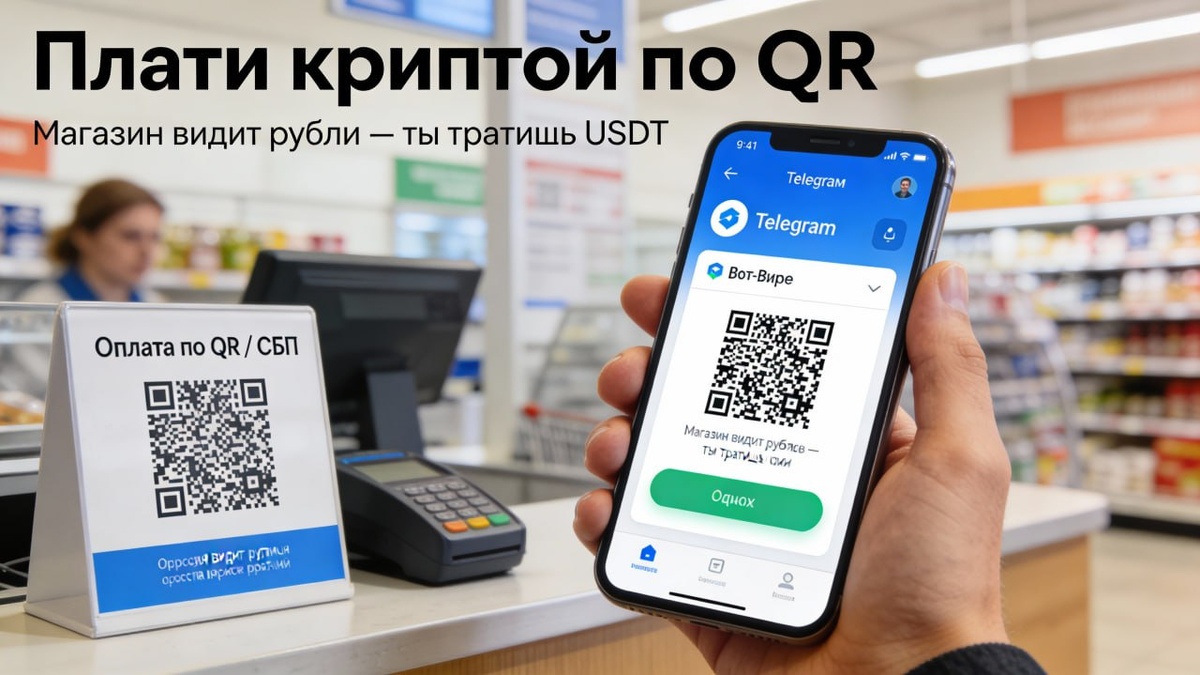 Платить криптой по QR в России можно так же просто, как обычной картой: на стороне магазина проходят рубли, а на вашей стороне списывается