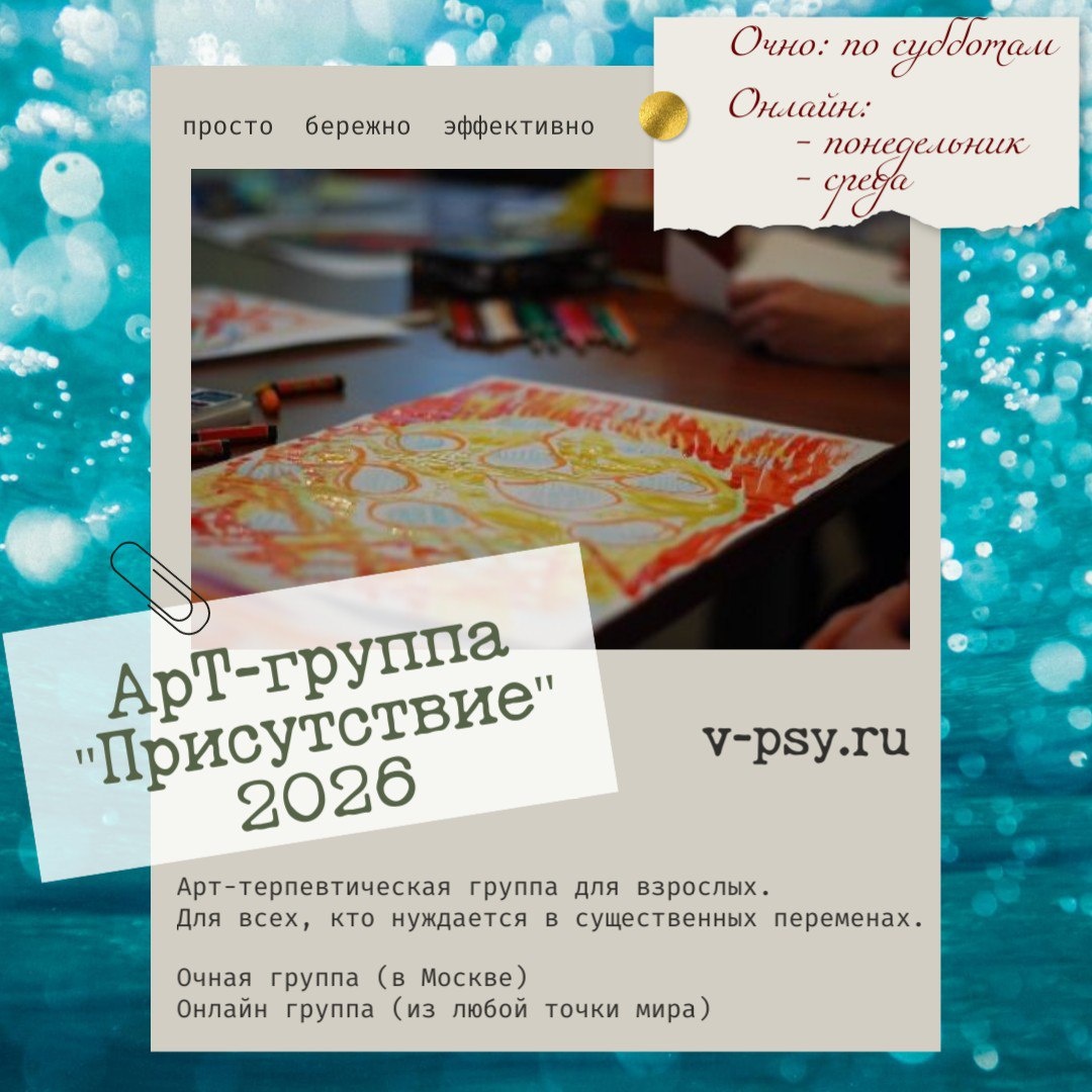 27 декабря закончился осенний сезон очной АрТ-группы. Увы, не все сумели дойти до финала. Однако, те, кто дошли – продвинулись очень значительно. Не всегда эти изменения видны сразу, и не всегда они проявляются во внешних изменениях. Но они всегда хорошо чувствуются внутри. Один из отзывов с осенней группы: «Добрый день! Выражаю огромную благодарность Виктору и его методу присутственной арт-терапии. Для меня это стало удивительным опытом встречи с собственным подсознанием. Виктор, как проводник, помог мне безопасно подойти к своим травмам, увидеть их и дать им то, чего они ждали, – внимание и заботу. Занятия требовали полной эмоциональной отдачи и оставляли ощущение мощной внутренней работы, что только подтверждало их глубину и эффективность. Очень довольна выбором специалиста и методики. Алина» Если вы устали от бесконечного анализа и хотите прожить изменения, а не говорить о них, присоединяйтесь к новому сезону арт-терапевтической группы! Что вас ждёт: ✔️ Внимательное и бережное