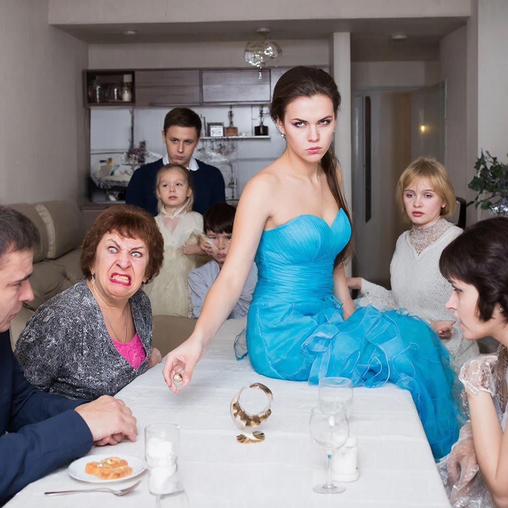 – Я не с тобой разговариваю. Я спрашиваю свою невестку. Которую я, между прочим, с самого утра жду на кухне. Чтобы вместе, как полагается, по-семейному, приготовились. А она в платье.