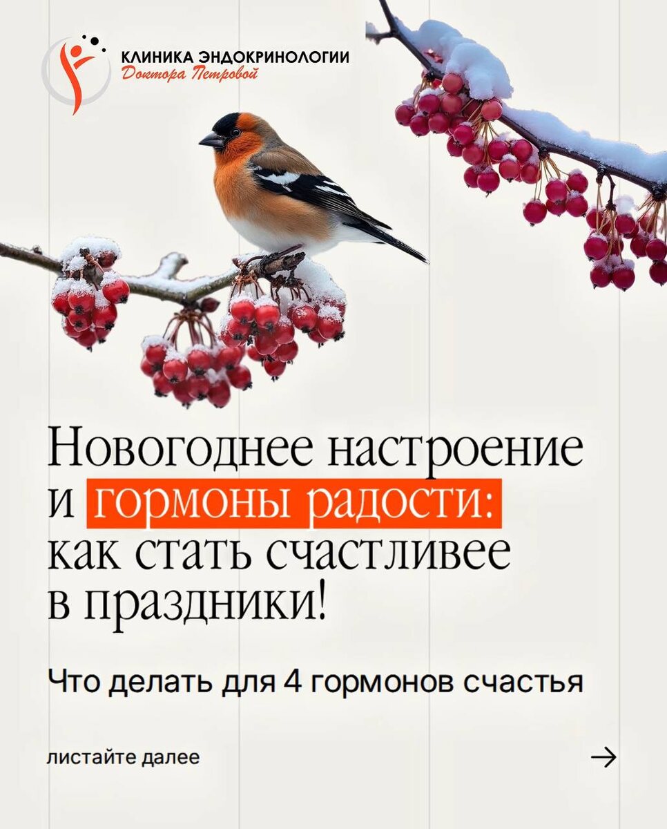 Волшебные, праздничные январские — прекрасная возможность естественным образом поддержать и даже увеличить выработку «гормонов счастья»: дофамина, серотонина, окситоцина и эндорфина.