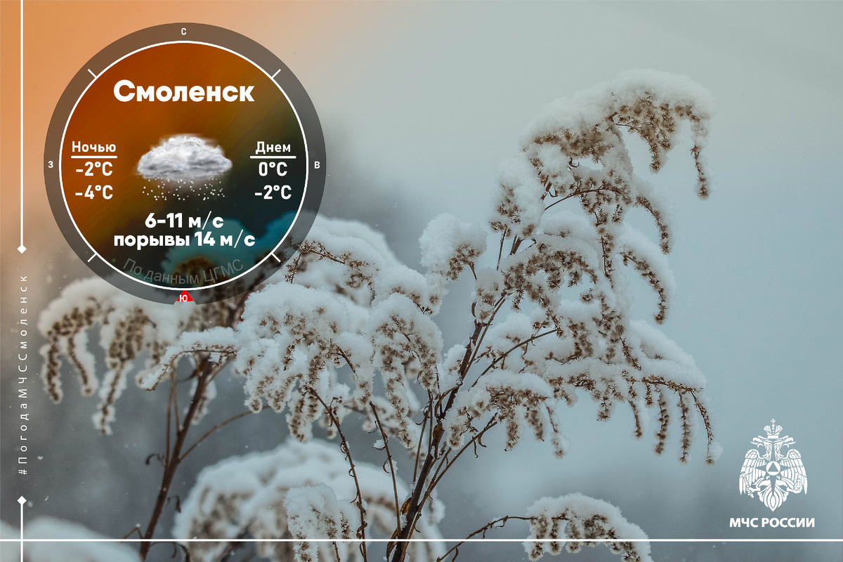 Ожидается облачная погода. Ночью продолжит идти снег, а днём его интенсивность снизится, временами возможен мокрый снег. Местами по области будут наблюдаться слабая метель, гололёд и налипание мокрого снега, а на отдельных участках дорог возможны снежные заносы и гололедица.
