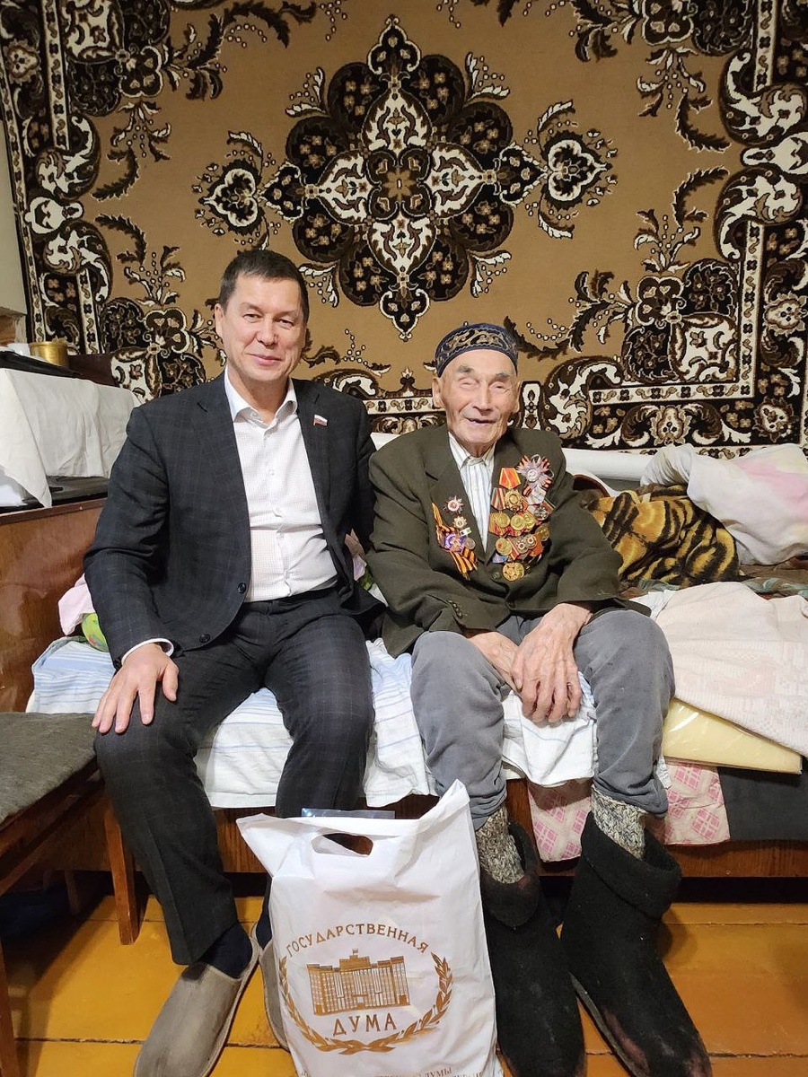 ⭐ С большим волнением ежегодно принимаю участие в акции "С Новым годом, ветеран!" партии "Единая Россия". Съездил к участникам Великой Отечественной войны своего округа. Вручил им подарки, поздравил и поблагодарил за Великую Победу. Время неумолимо идет вперёд. К сожалению, участников ВОВ, живых легенд, с каждым днем становится меньше. Им тяжело ходить, многие плохо слышат. Хочется успеть побыть с ними, подержать за руки. Махмутов Ишкул Хамзаевич, житель села Казмашево Абзелиловского района, узнал меня сразу. С ним встречаемся ежегодно. Ишкул бабай ушёл на фронт в 1943 году шестнадцатилетним парнишкой, указав свой возраст на год старше. Участвовал в освобождении от фашистов Смоленской области, Белоруссии, Прибалтики. Вернулся в родное село только в 1950 году, женился, работал в колхозе. В этот раз он долго рассказывал про войну, я записывал видео на телефон.